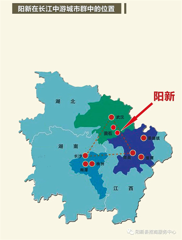 陽新位于武漢“1+8”城市圈,西接京廣,南通京九,北連武黃,距離武漢市120公里,南昌市145公里。長江黃金水道過境45公里,目前擁有1個億噸大港,2座長江大橋,3座高鐵站,3條國道,4條一級公路,5條高速,1小時可至鄂州順豐國際機場,2小時可至武漢天河國際機場及南昌昌北國際機場,疊加臨空臨港臨鐵臨水優勢,初步形成公、鐵、水、空四位一體的多式聯運體系,正在成為通向全國、聯通世界的“中轉港”“樞紐港”“國際港”。