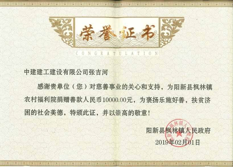 陽新縣楓林鎮(zhèn)農(nóng)村福利院捐贈榮譽...